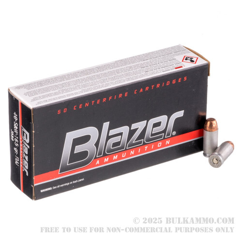 This 40 SW ammo is topped with .40 Smith and Wesson 165 grain TMJ or Total Metal Jacket bullets that are clad in a copper alloy jacket and have a solid lead core. They are loaded into the previously mentioned aluminum cases that are Boxer primed, new, and have heavy wall construction. They have a muzzle energy that hits hard at 443-foot pounds. They also feature a reported muzzle velocity of 1100-feet per second. These .40 S&W rounds come in 50 round boxes, in a case of 20 boxes, making a total of 1000 rounds in this case of Blazer ammunition. These are the perfect ammo to take along to the range, use for your Department Qualification Testing, for competition shoots, or for a great day of pistol shooting with your friends. Either way, these rounds are ideally suited for any type of training. Get yourself a couple cases today.