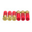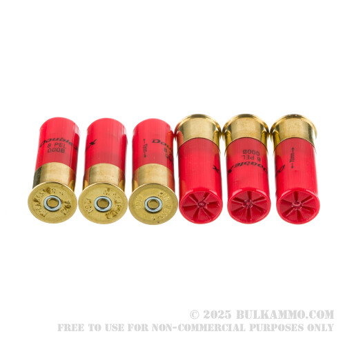 This round is stuffed with eight pellets of triple-aught, which are each 0.36” in diameter. The shot pellets aren’t just made of hard lead – they are additionally copper-plated, which protects them from deformation during ignition as well as penetration. A Double X shot pellet thus patterns tightly before plunging deeply into its target, and it gouges quite a wide wound channel before finally coming to a rest.