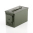 These M2A1 cans are NEW PRODUCTION and can be bought in different configurations ranging from a single can to twelve-can cartons (while supplies last). They’re made the same size and with the same steel box/lid, rubber seal, olive drab powder coating, and steel handles as mil-spec M2A1 cans, but they were manufactured in China to keep the price low.