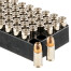 This round offers corrosion resistant nickel plating on its reloadable brass casing, which additionally promotes smooth cycling in a semi-automatic firearm. Please note that this is +P ammunition, and that you had better only fire it in a weapon that is rated for it or risk kissing your career as a shadow puppeteer goodbye forever.
