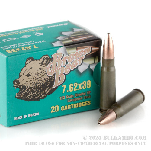 500 Rounds of 7.62x39mm Ammo by Brown Bear - 123gr HP