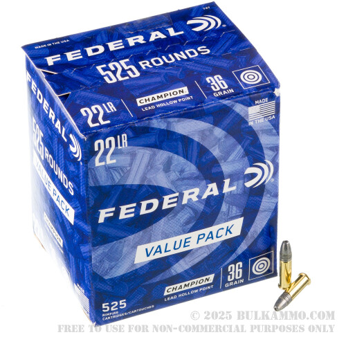 This is a value pack of ammo: 525 rounds all nestled together in one big paper box. But just because it’s bulk doesn’t mean that Federal omitted their characteristically high-quality primers and brass cases. You can’t reload 22 LR cases (well, technically you can if you really want to), although they make great whistles once they are empty!