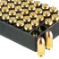 This 40 S&W cartridge features a 180 grain projectile. It is ideal for target practice because it has a flat nose, which punches clean holes through paper that are not only easily visible, but distinct enough to remove any ambiguity from the scoring process. This bullet also sports a full metal jacket, a great feature for extended range sessions because you’ll be able to fire longer in between cleanings without losing as much of your accuracy. This cartridge comes with a non-corrosive Boxer primed brass casing, so you will be able to reload to stretch out its life for several trips to the range.