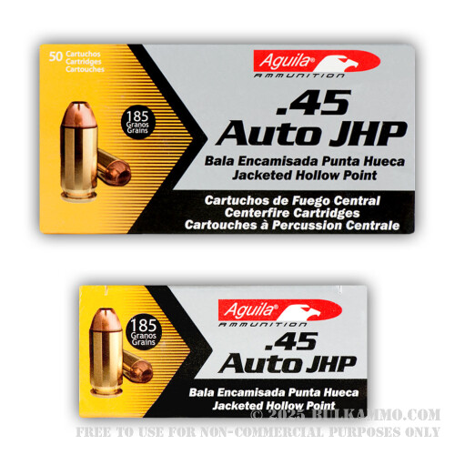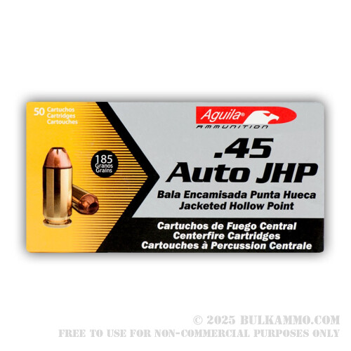 50 Rounds of .45 ACP Ammo by Aguila - 185gr JHP