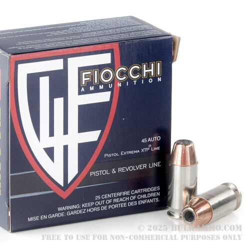 25 Rounds of .45 ACP Ammo by Fiocchi - 200gr JHP