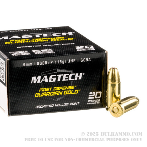 20 Rounds of +P 9mm Ammo by Magtech Guardian Gold - 115gr JHP