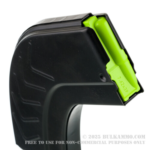This is D&H Industries’ American-made AR-47 mag. Its body and floorplate are both made of rugged carbon steel alloy, and they are both protected by a durable finish for enhanced protection against the elements. The mag’s 17-7 PH stainless steel spring remains uncorroded as it retains its suppleness indefinitely, and its anti-tilt follower ensures that you get to fire your rifle fast instead of cursing about failures to fire. The bright green follower makes it super obvious when you’ve run out of rounds!